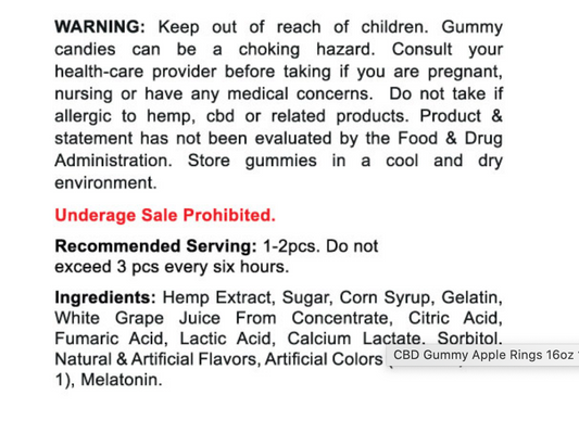 CBD GUMMY TRADITIONAL APPLE RINGS 16OZ 1500MG