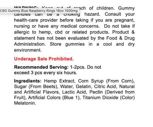 CBD GUMMY TRADITIONAL BLUE RASPBERRY RINGS 16OZ 1500MG